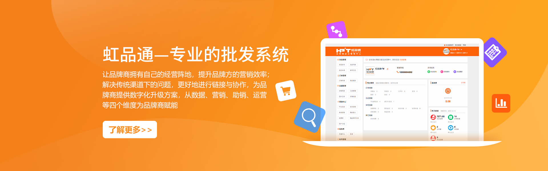 南寧虹品通軟件科技有限公司成立于2014年,是一家開(kāi)發(fā)軟件技術(shù)服務(wù)公司。公司總部位于中國(guó)綠城南寧市,專注軟件行業(yè)系統(tǒng)支持和供應(yīng)鏈大數(shù)據(jù)開(kāi)發(fā),并將其應(yīng)用于商業(yè)領(lǐng)域。掌握供應(yīng)鏈系統(tǒng)研發(fā)、商品流通大數(shù)據(jù)、批發(fā)零售商城等核心技術(shù),并持有多項(xiàng)技術(shù)專利和著作權(quán)。公司致力于幫助生產(chǎn)廠家、商品流通、銷售型企業(yè)向互聯(lián)網(wǎng)化轉(zhuǎn)型升級(jí),利用互聯(lián)網(wǎng)獲取客戶、洞察市場(chǎng)、服務(wù)客戶